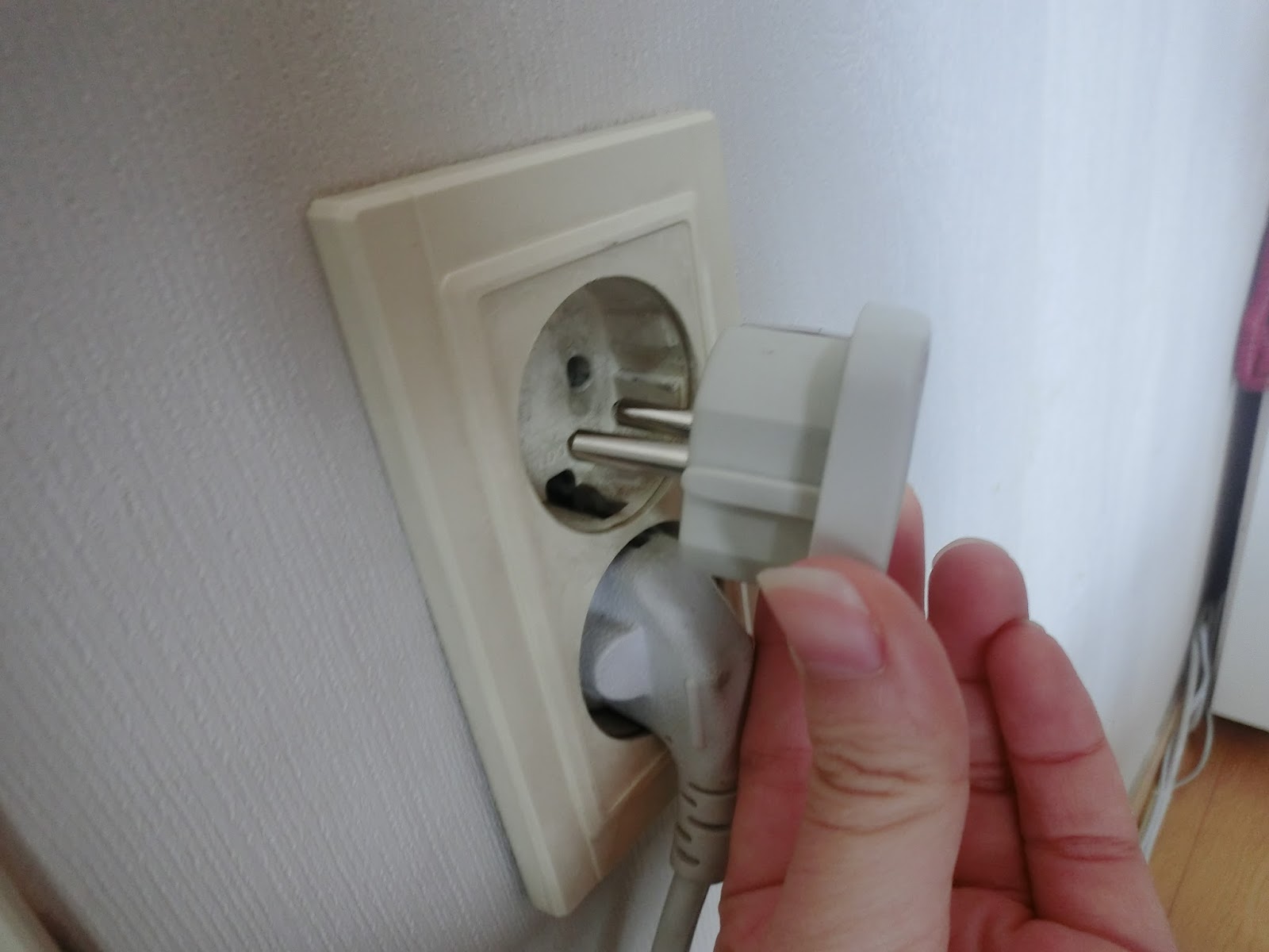 但是韓國是這樣的入牆式圓形插座…是圓形2腳的…記得要注意囉~