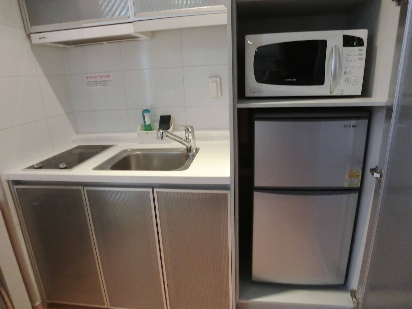 上一張照片應該有看到有洗手盤…也有微波爐(是可以用的)